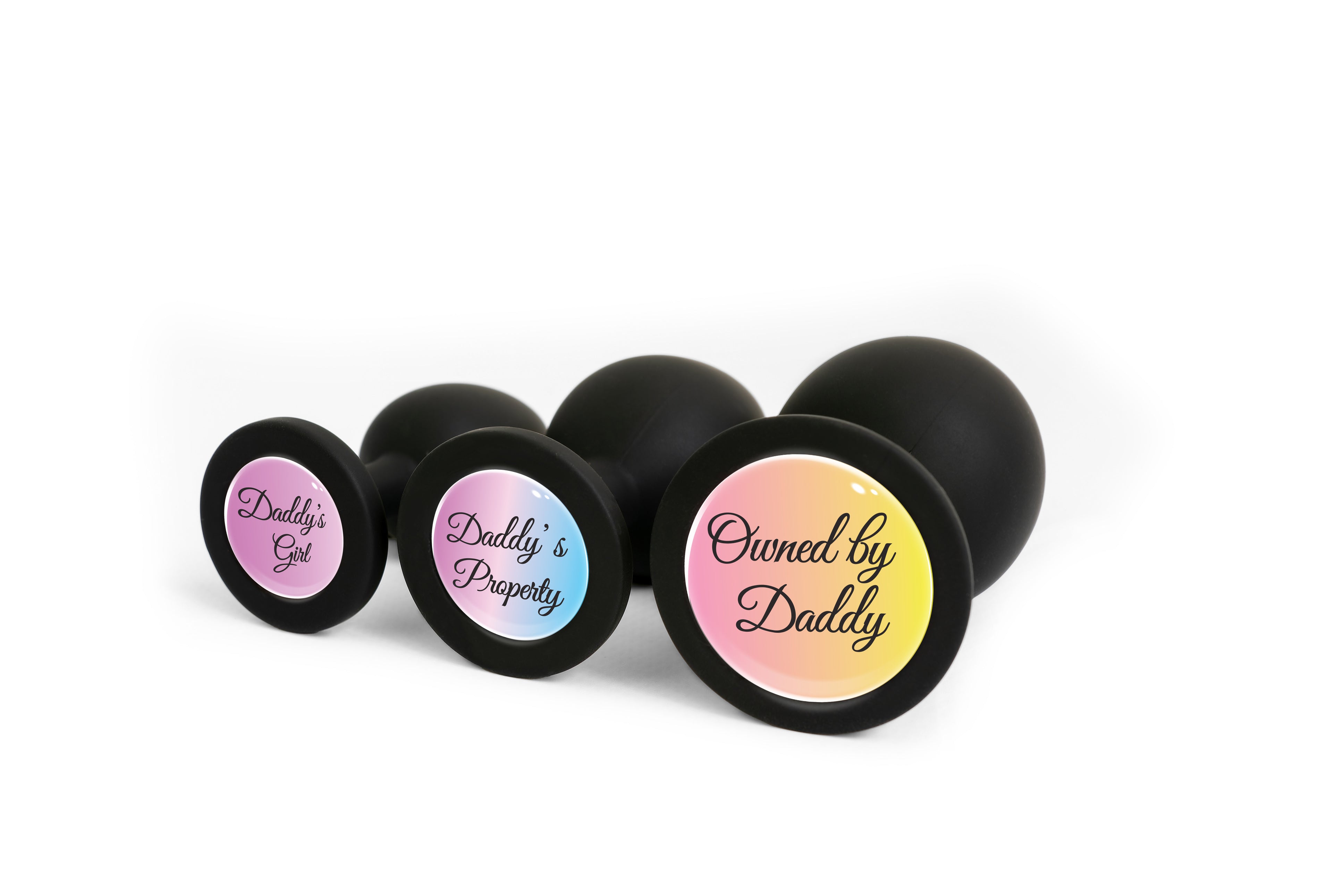 Анальна пробка силіконова чорна з написом Daddy's Property OKOVA розмір L