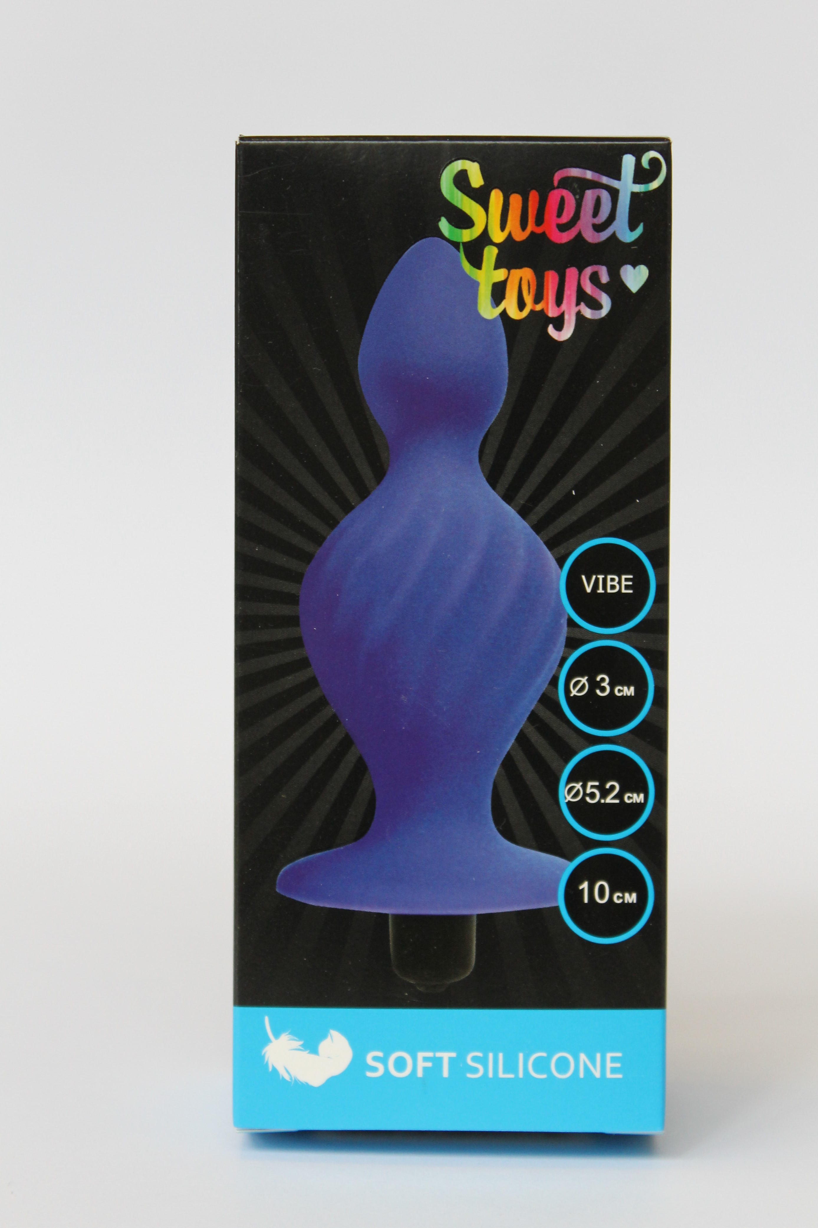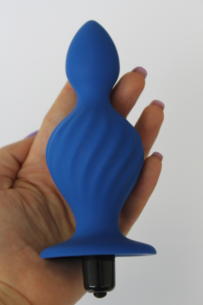 Анальна пробка ребриста силіконова з вібрацією SWEET TOYS синя L 10 см d 3,0x5, 2 см