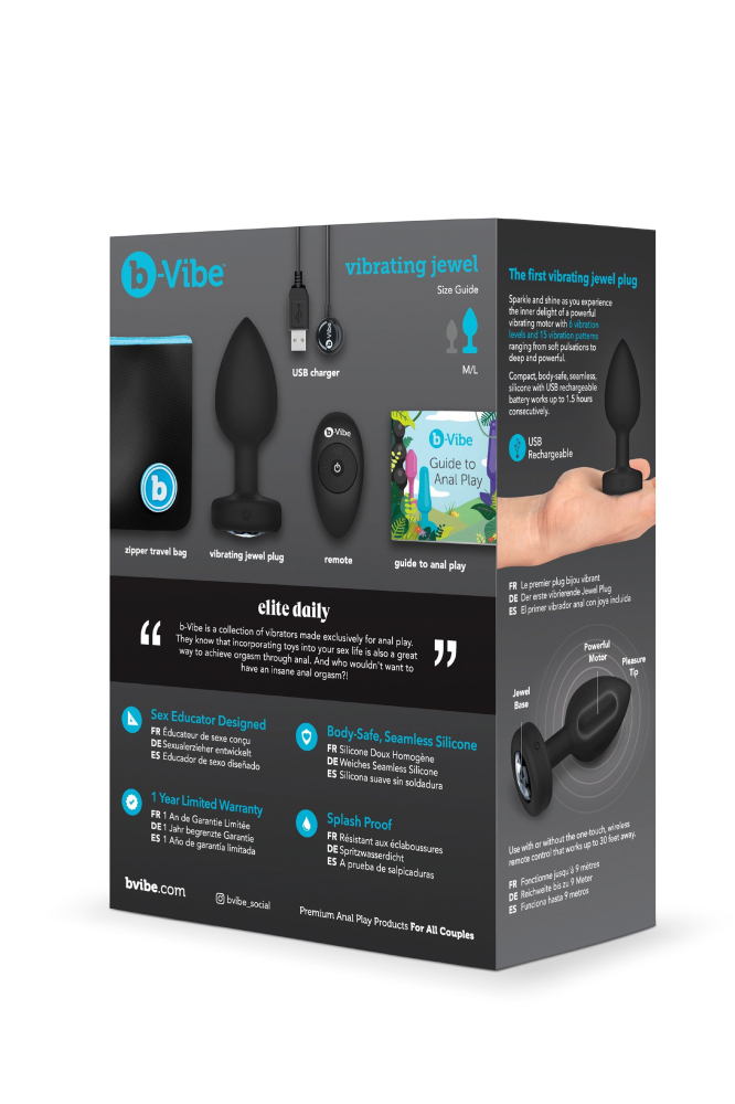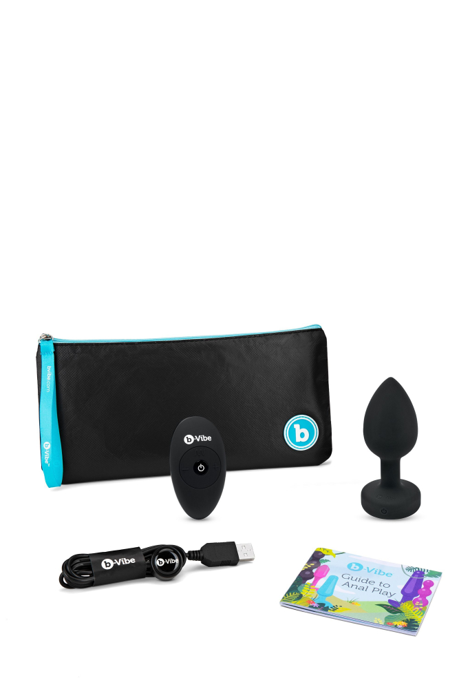 Анальна пробка з каменем з вібрацією M/L B-Vibe з дистанційним пультом керування, чорна