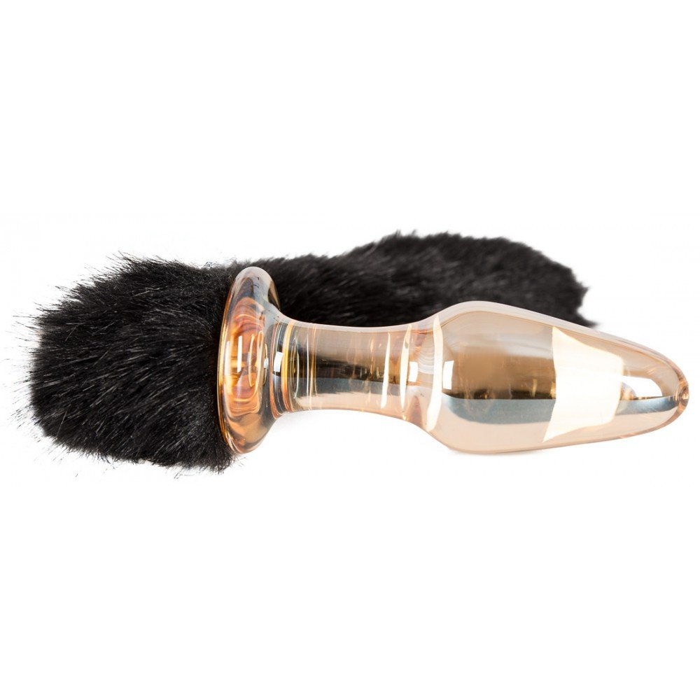 Анальна пробка скляна тілесного кольору із чорним хвостиком You2Toys