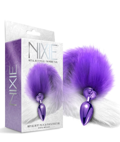 Анальна пробка із хвостом фіолетового кольору NS Novelties Global Novelties Nixie Metal Butt Plug With Ombre Tail Purple Metallic