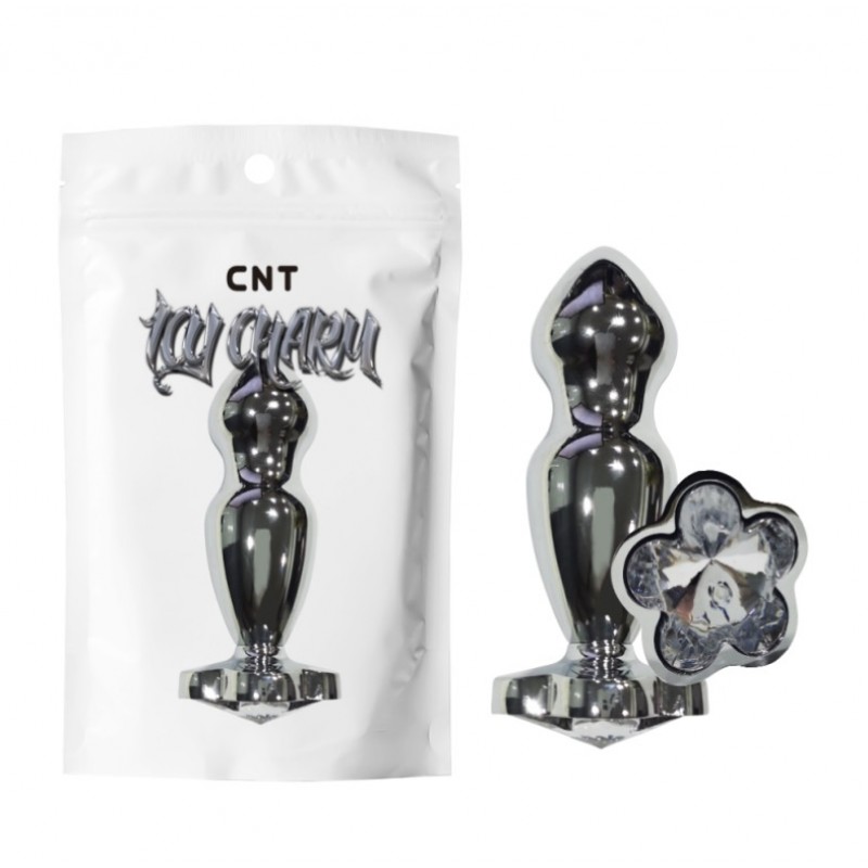 Характеристики Анальна пробка ребриста з медичної сталі з камінчиком у формі квітки сріблястого кольору Cnt Blossom Gem