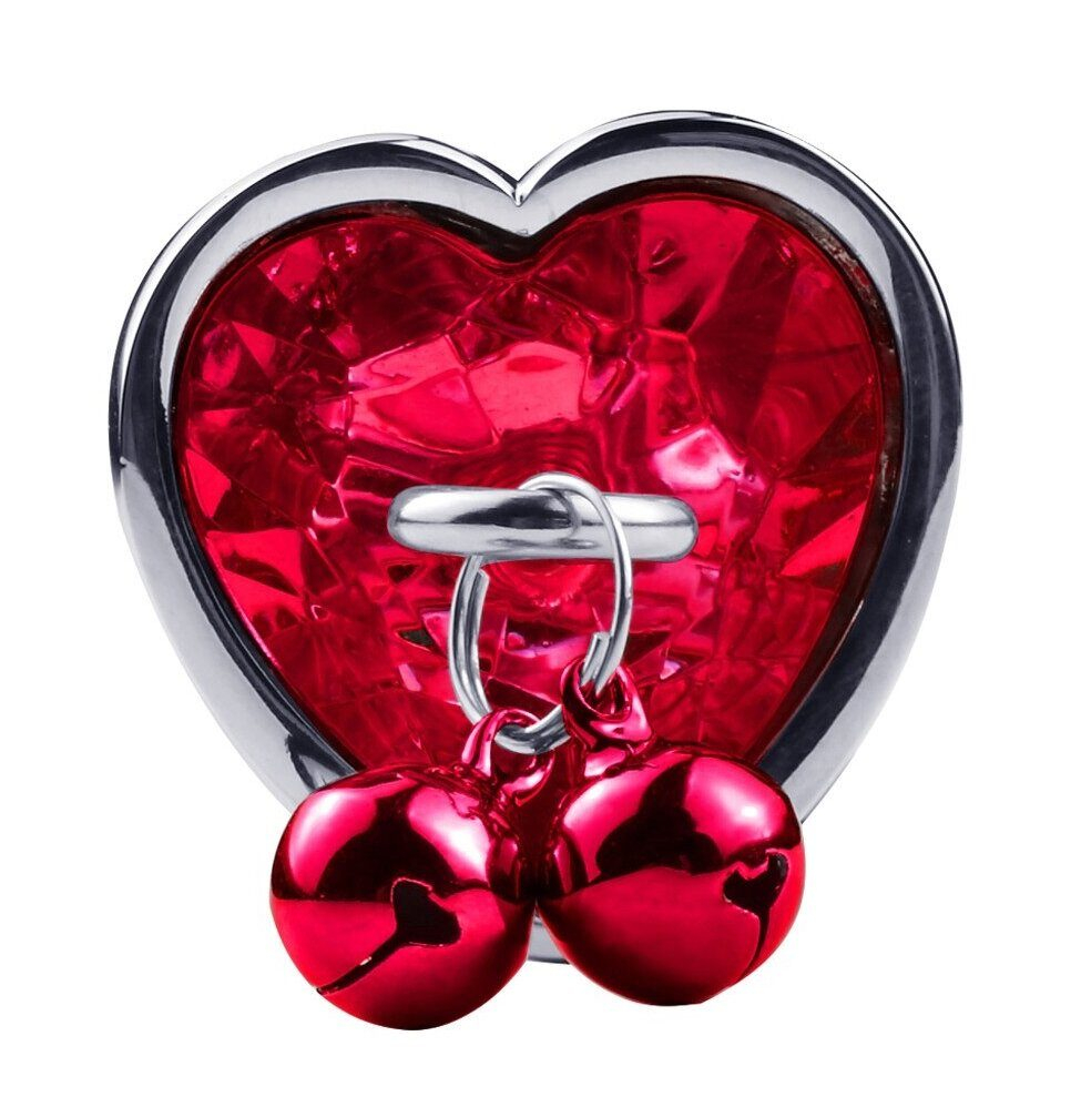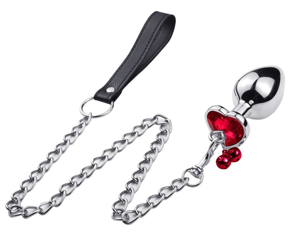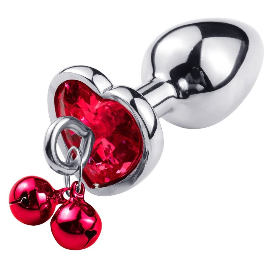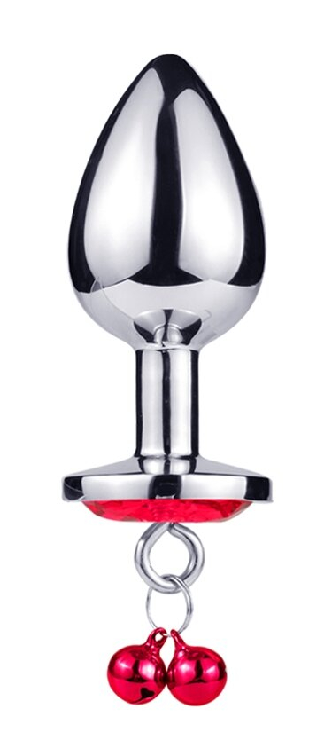 Анальна пробка середнього розміру з нержавіючої сталі. Пробка прикрашена барвистим з кристалом і дзвіночком.