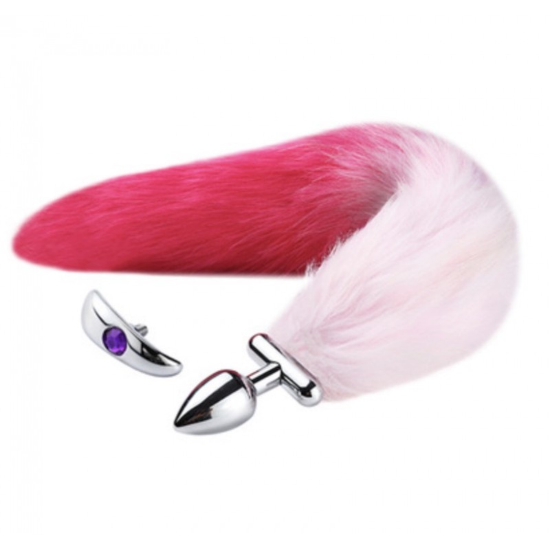 Анальний металевий затор сріблястого кольору з пишним рожево червоним хвостом Bdsm4u