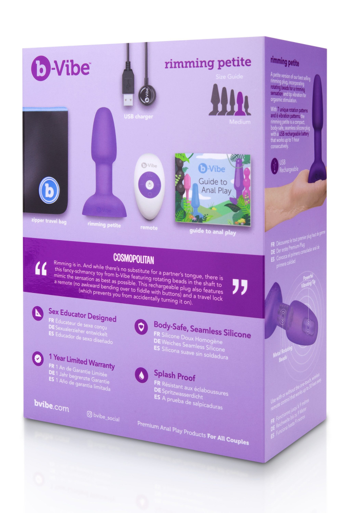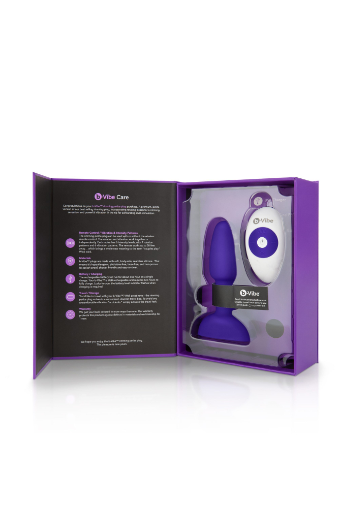 Анальна пробка з риммінг ефектом та пультом B-VIBE RIMMING PETITE, фіолетова