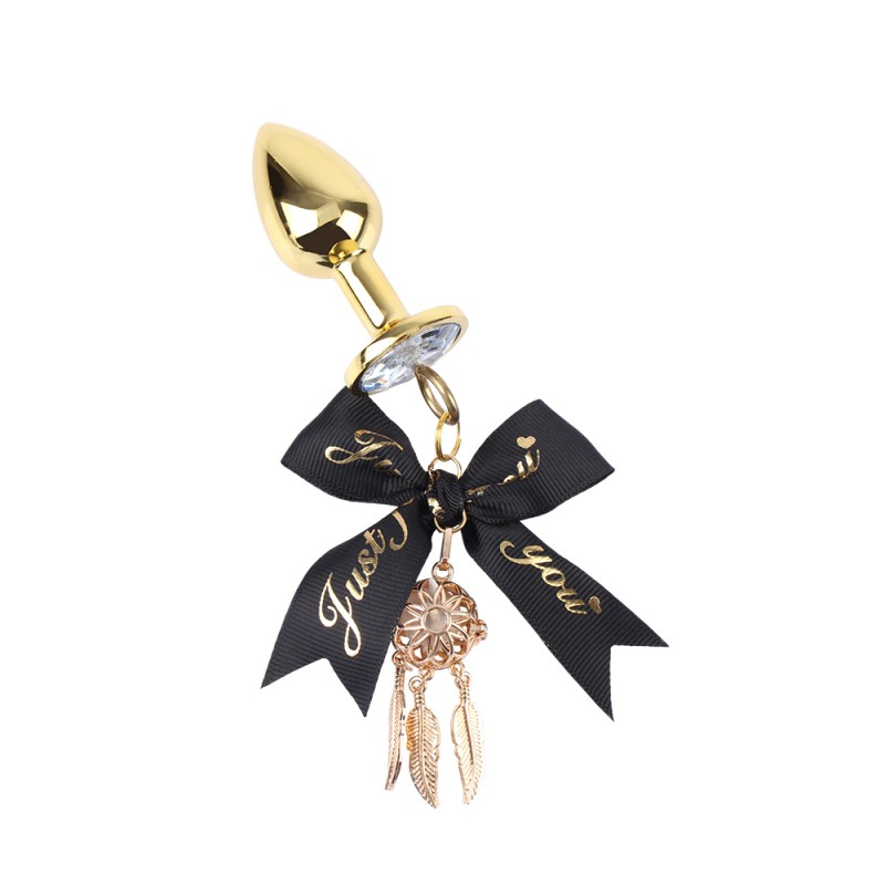 Характеристики Анальна пробка із сріблястим камінчиком та затискачами для сосків з бантиками металеві золотистого кольору Chisa
