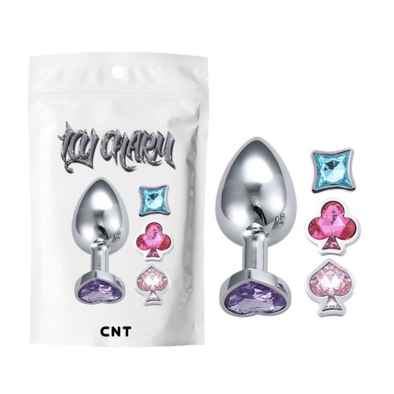 Анальний корок із медичної сталі сріблястого кольору із змінними кольоровими наконечниками Cnt Poker Game