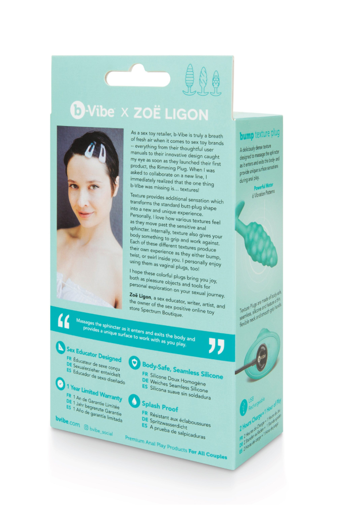 b-Vibe – преміальна колекція високотехнологічних товарів для анальних ігор преміум-класу, яка заснована сертифікованим сексом викладачем Алісією Сінклер. В результаті багаторічних досліджень, кожен продукт b-Vibe використовує інноваційну тактику проектування для вирішення конкретних, часто неврахованих джерел анального задоволення. Будучи піонером у категорії високоякісних анальних аксесуарів, компанія b-Vibe змогла задати високоякісний, але доступний тон для категорії, що швидко розвивається. Зокрема, основна місія b-Vibe – сприяти дослідженням за допомогою освіти. Пропонуючи постійний набір доступного контенту, ретельно написані посібники та реальну інформацію, бренд сприяє інклюзивності та усвідомленій грі. Вся продукція b-Vibe на 100% безпечна для тіла відповідно до Каліфорнійської пропозиції 65 (без фталатів), а також має глобальні сертифікати CE та REACH. Кожна вилка поставляється з гарантією та буклетами з інструкціями, щоб зробити роботу безпечнішою, інформативнішою і, нарешті, приємнішою».