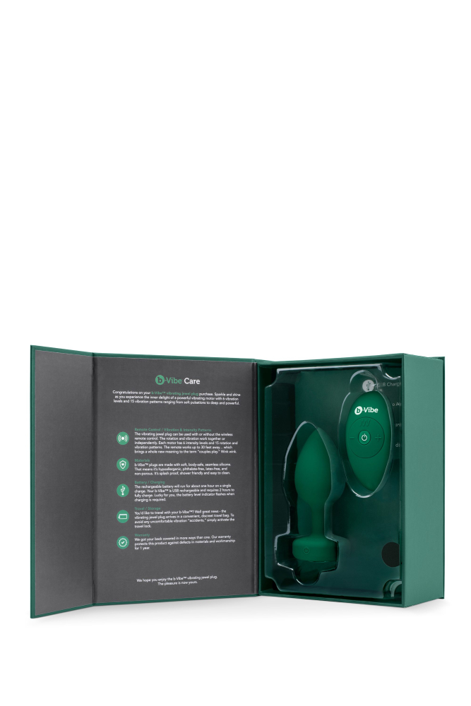 Анальна пробка з вібрацією та пультом B-Vibe - Vibrating Jewel Plug Emerald
