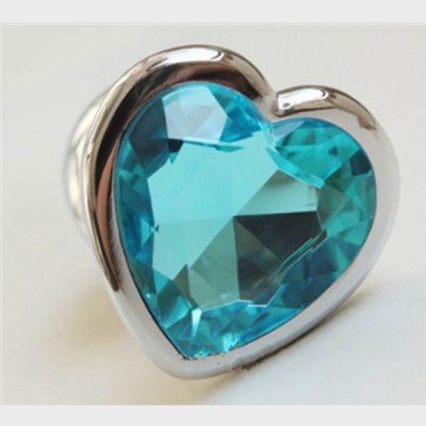 Характеристики Анальна пробка металева срібляста з блакитним камінчиком у вигляді сердечка Bdsm4u розмір М