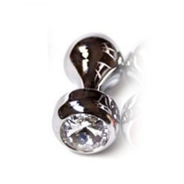 Анальна пробка срібляста з прозорим каменем