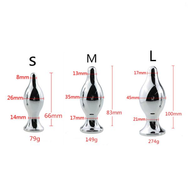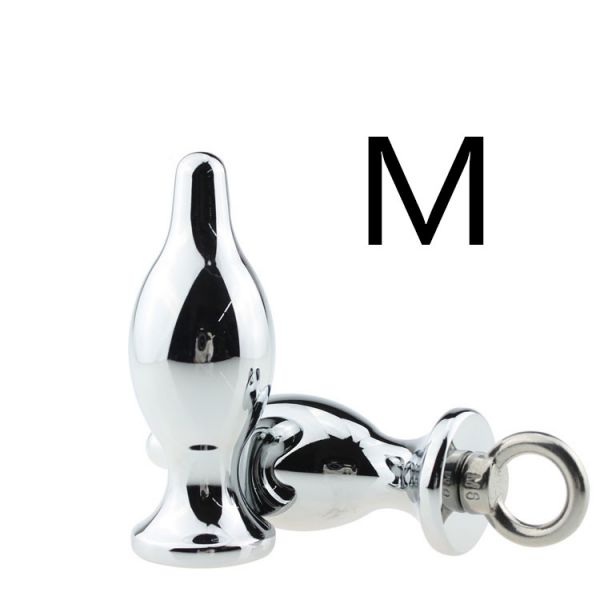 Анальна пробка сріблястого кольору. Виготовлена з нержавіючої медичної сталі. Прикрашена ручкою-кільцем. Довжина 8,7 см., діаметр в найширшому місці 3,6 см, Мінімальний діаметр 1,7 см.Вага 150 грам.