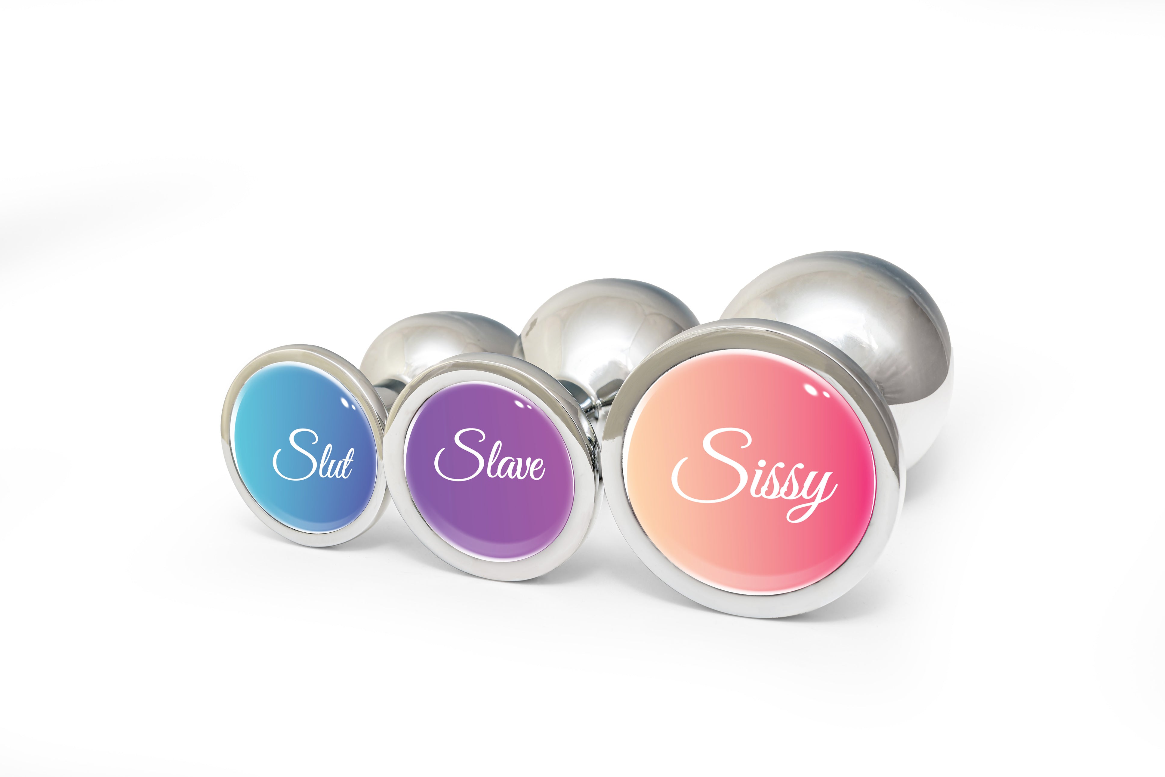 Анальна пробка металева срібляста з написом Sissy OKOVA розмір M