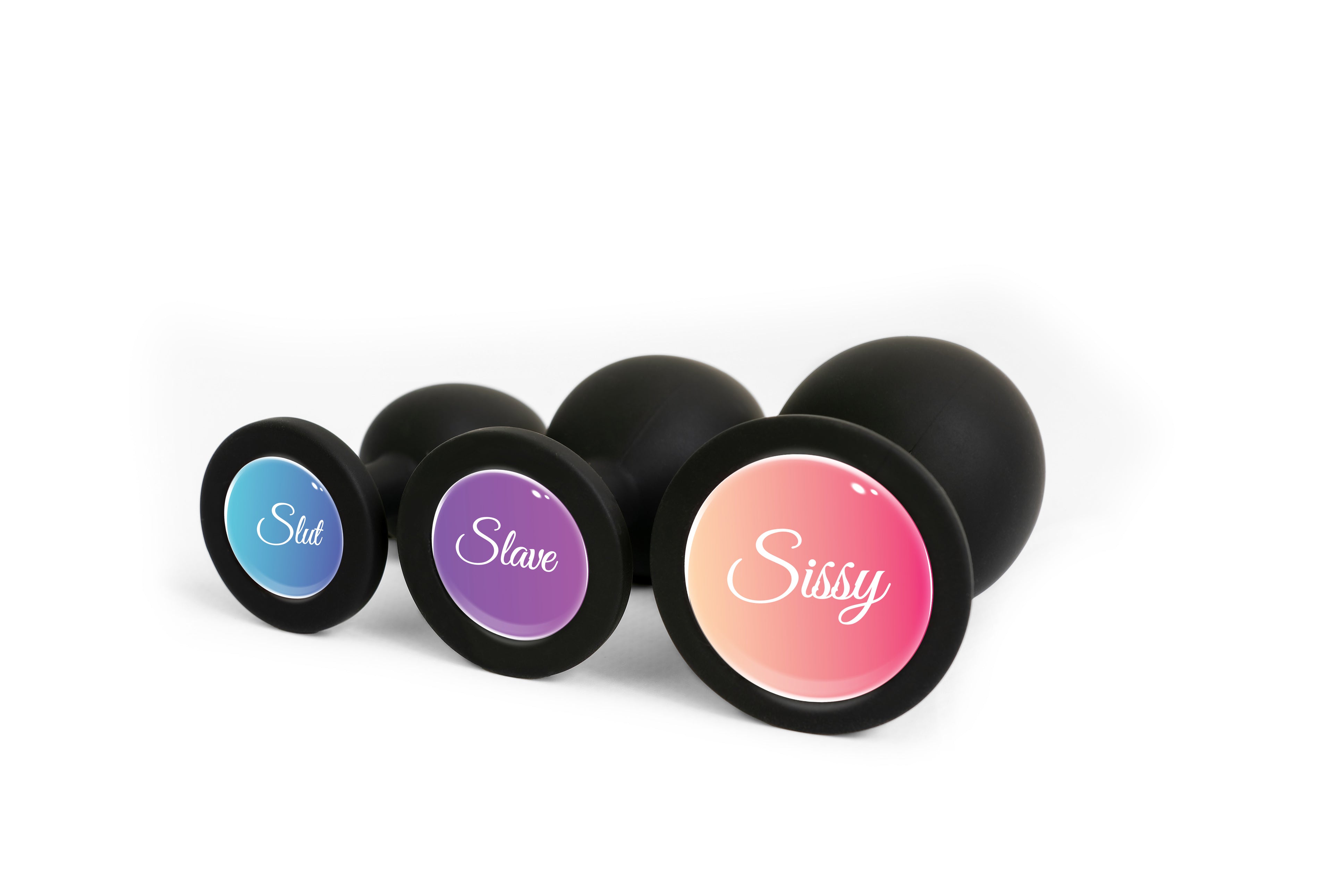 Анальна пробка силіконова чорна з написом Slut OKOVA розмір L