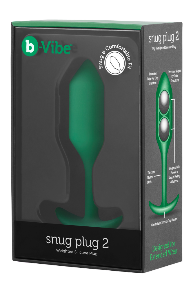 Анальна пробка із зміщеним центром ваги B-Vibe Snug Plug 2, силіконова, зелена