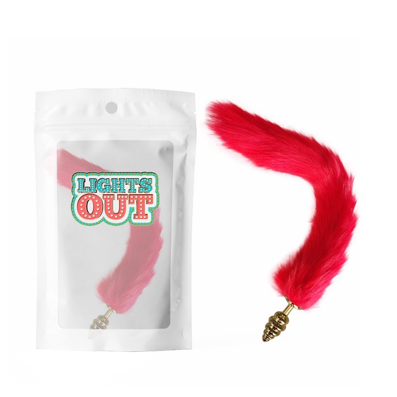 Анальна пробка спіралеподібна металева золотистого кольору з червоним хвостом Cnt Foxs Spiral