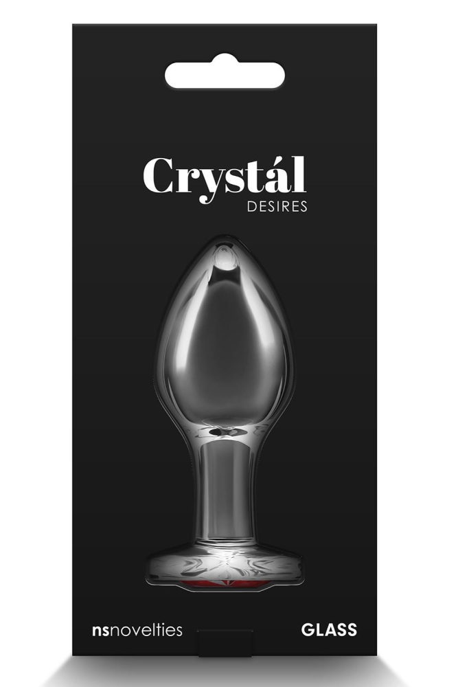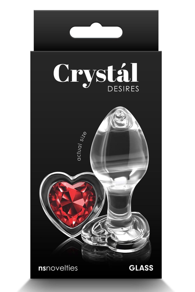 Анальна пробка прозора NS Novelties Crystal Hear скляна з червоним серцем, M