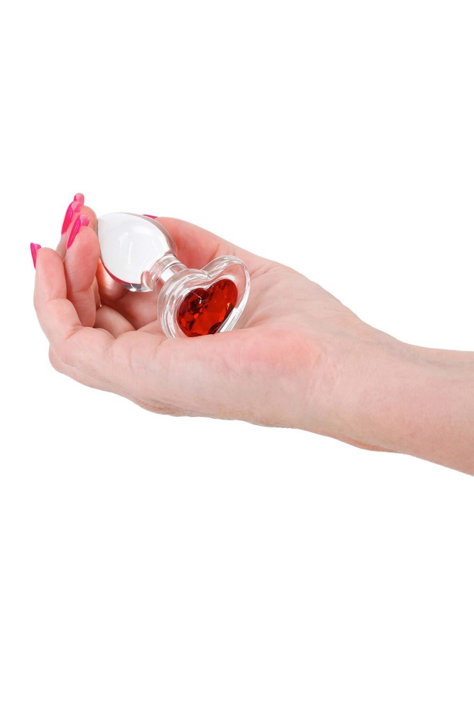 Анальна прозора пробка із серцем NS Novelties Crystal Desires Red Heart скляна, Mini