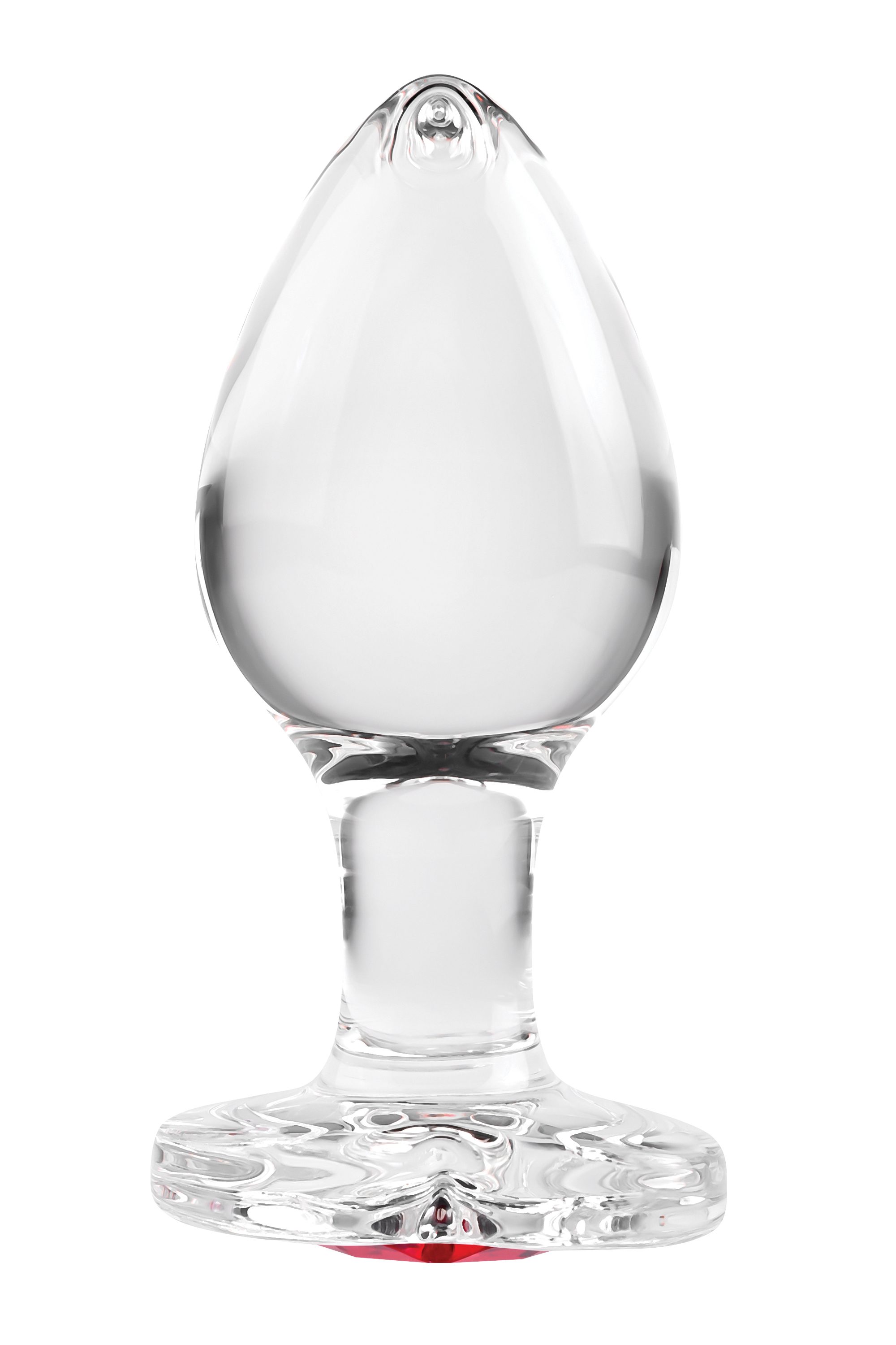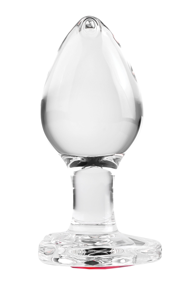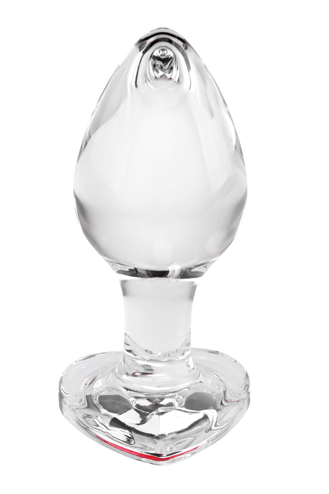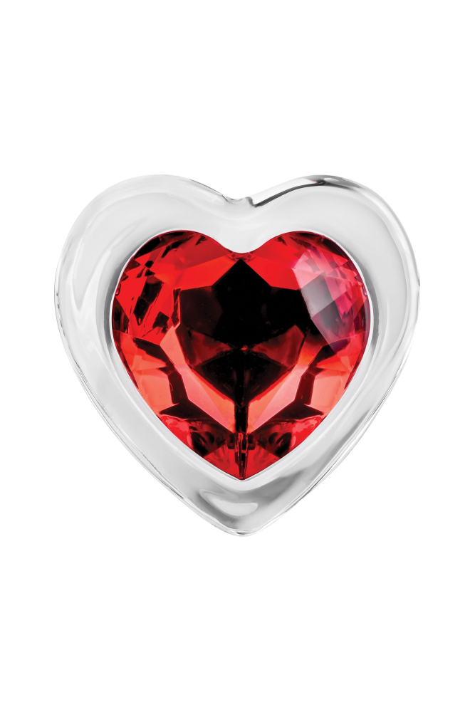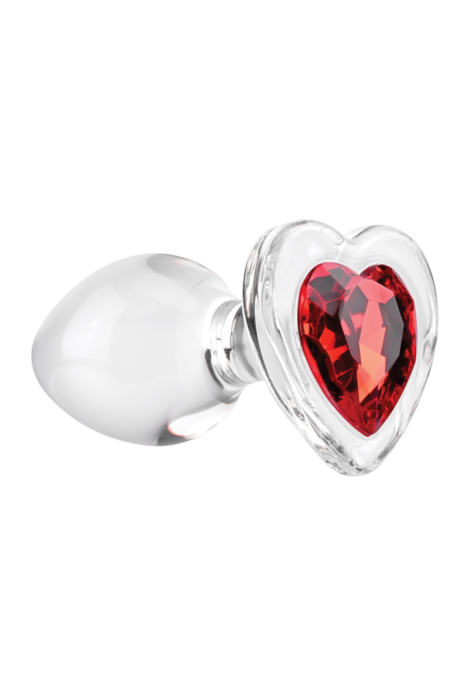 Анальна пробка скляна прозорого кольору з червоним камінчиком у формі серця Adam & Eve Glass plug medium