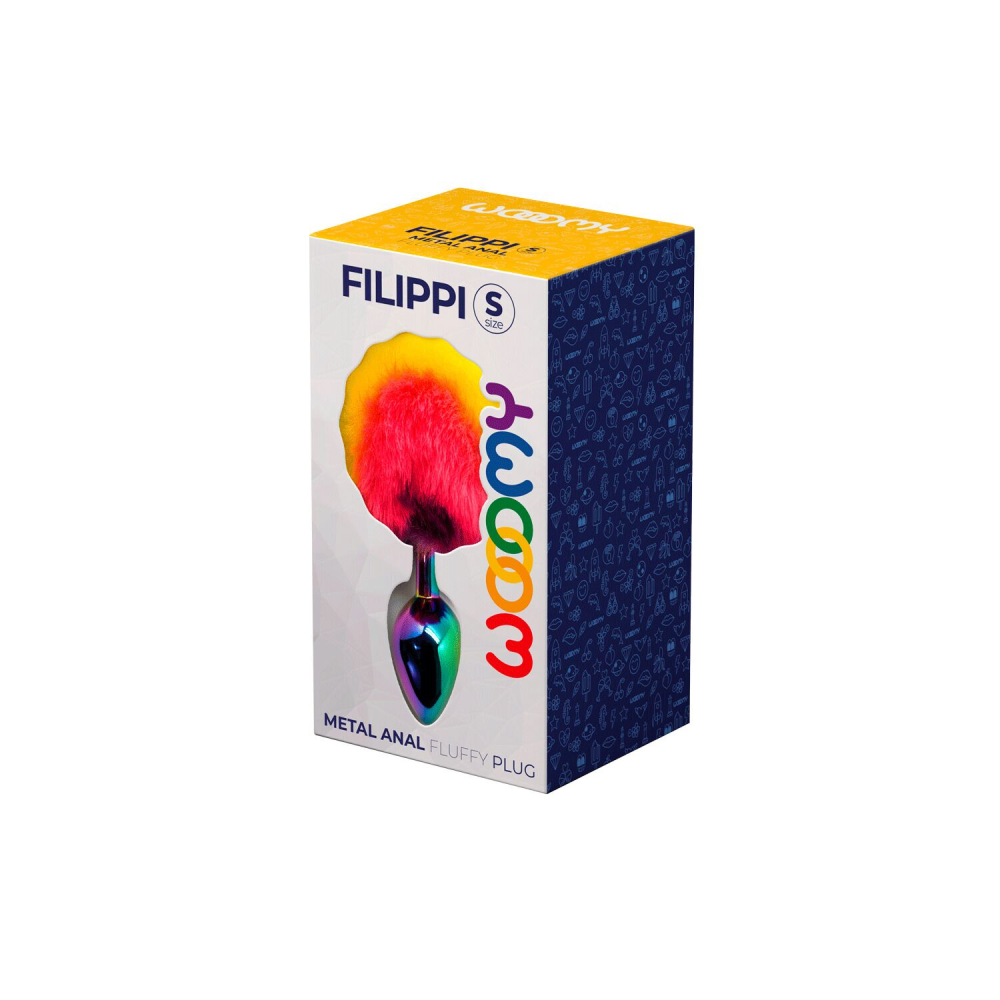 Анальний металевий затор з хвостиком райдужного кольору Wooomy Filippi розмір S