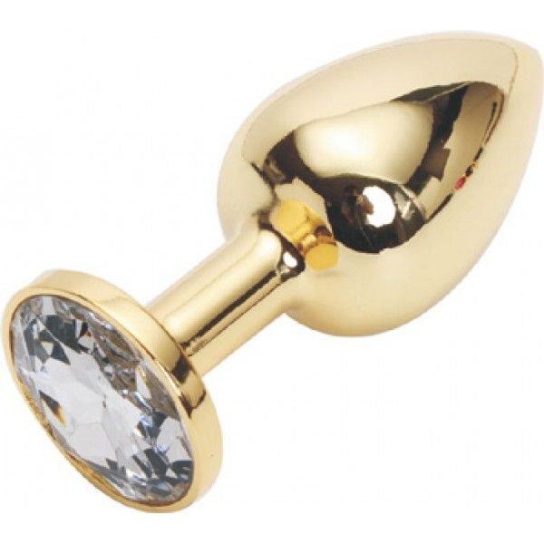 Анальна пробка золота з прозорим кристалом Середня