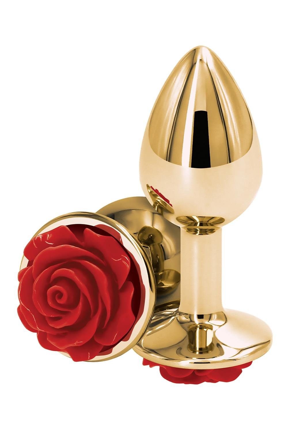 Анальна пробка золотиста NS Novelties Rear Assets з червоною трояндою, Small