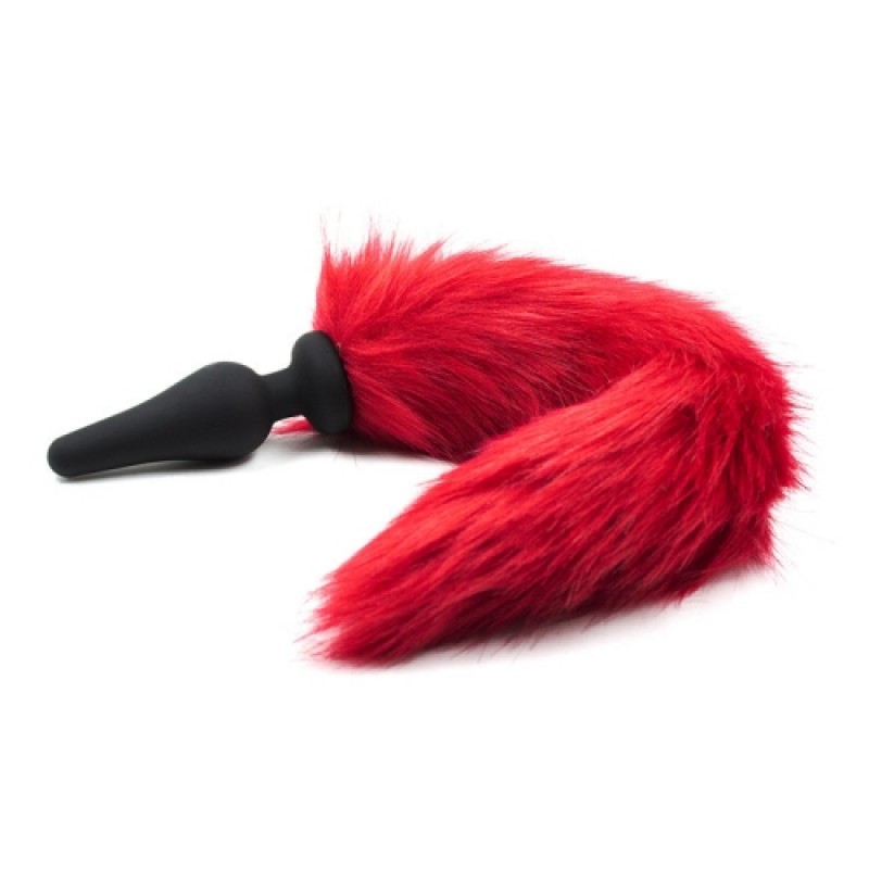 Анальний силіконовий затор з червоним пухнастим хвостом Flirting Tail Wool