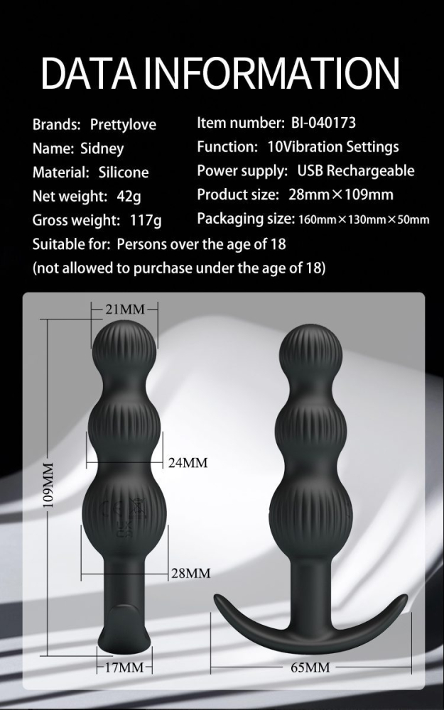 Анальна пробка з вібро PRETTY LOVE Sidney, чорна, 10.9 х 2.1-2.8 см