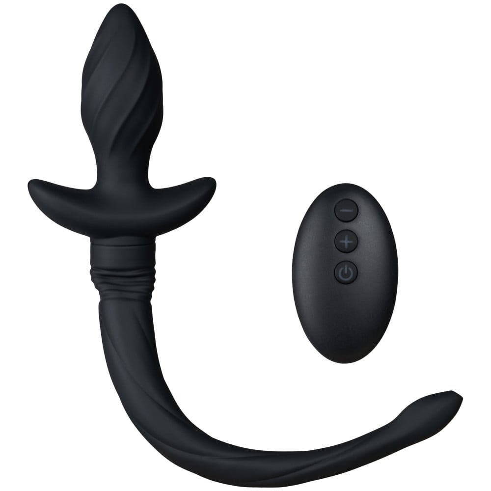 Анальна вібропробка з силіконова хвостом з пультом чорного кольору Тaboom