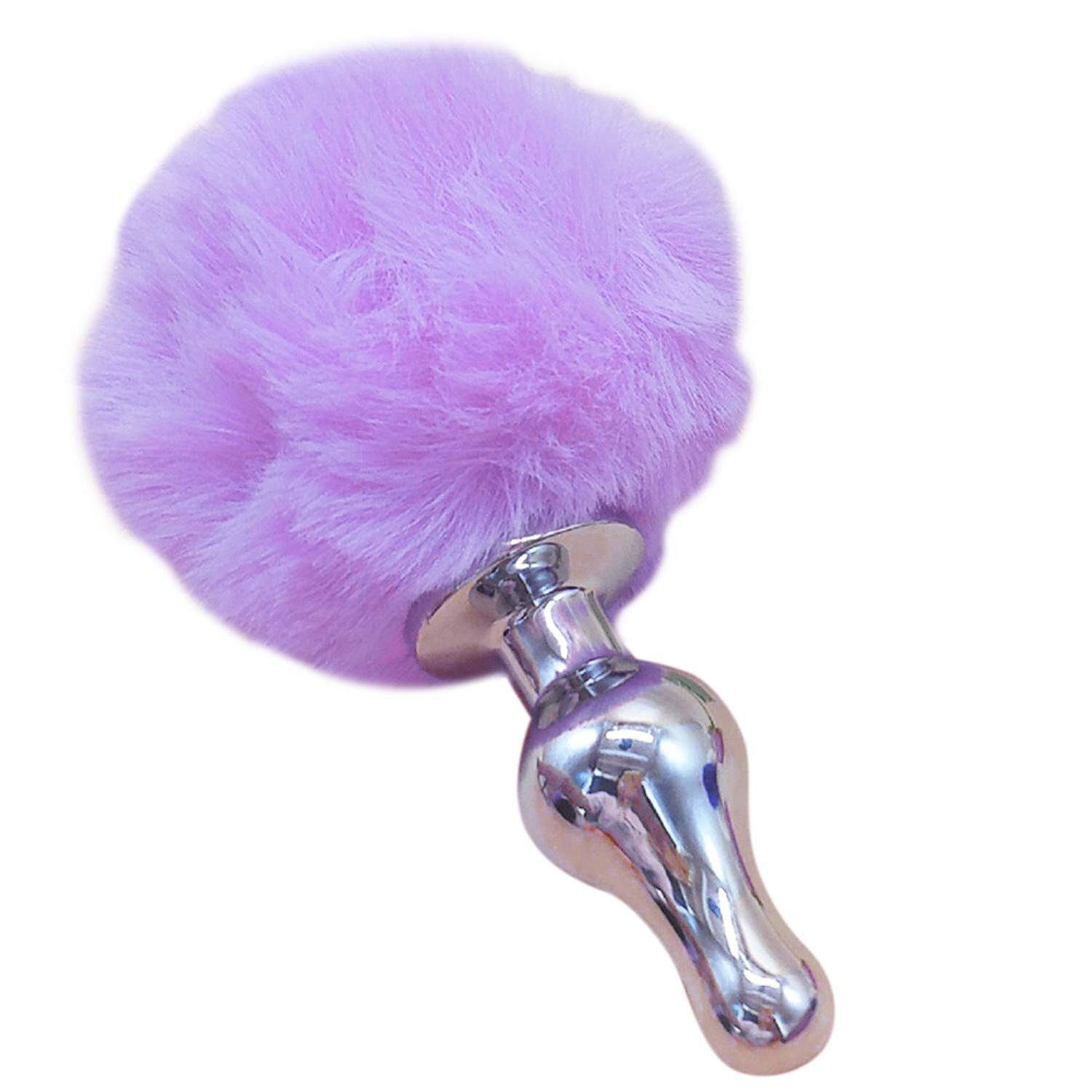 Анальна втулка металева з фіолетовим хвостиком зайчика SKN-Z15 розмір S