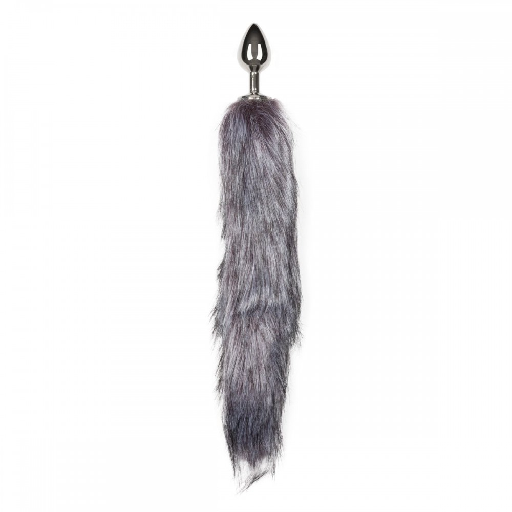 Анальна пробка металева з лисячим сірим хутряним хвостиком Easy Toys розмір М