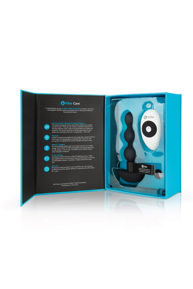 Анальні кульки з пультом, 2 мотори B-Vibe TRIPLET ANAL BEADS, чорні