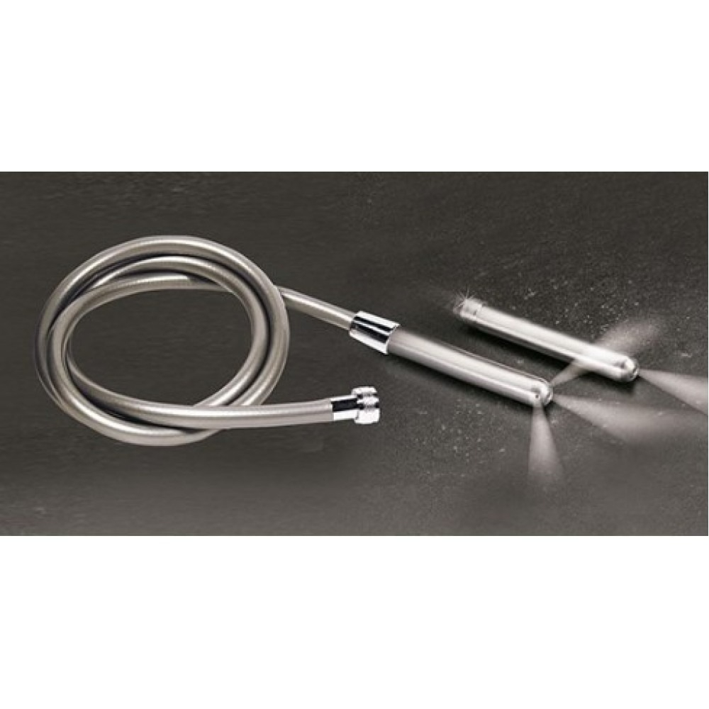 Насадка має прямий алюмінієвий стовбур із різьбленням, за допомогою якого кріпиться до душового шлангу.