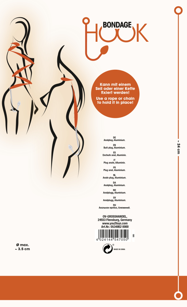Для справжніх аматорів кабали! Ця анальна пробка ідеально підходить для практики кабали. Гачок дозволяє прикріпити до нього мотузку, який, у свою чергу, може бути прив'язаний до рук, шиї або подібних предметів, так що власник анального штекера дозволяє йому проникати глибше з кожним рухом. Обов'язкова умова для кожного любителя аналу та ентузіаста кабали!