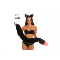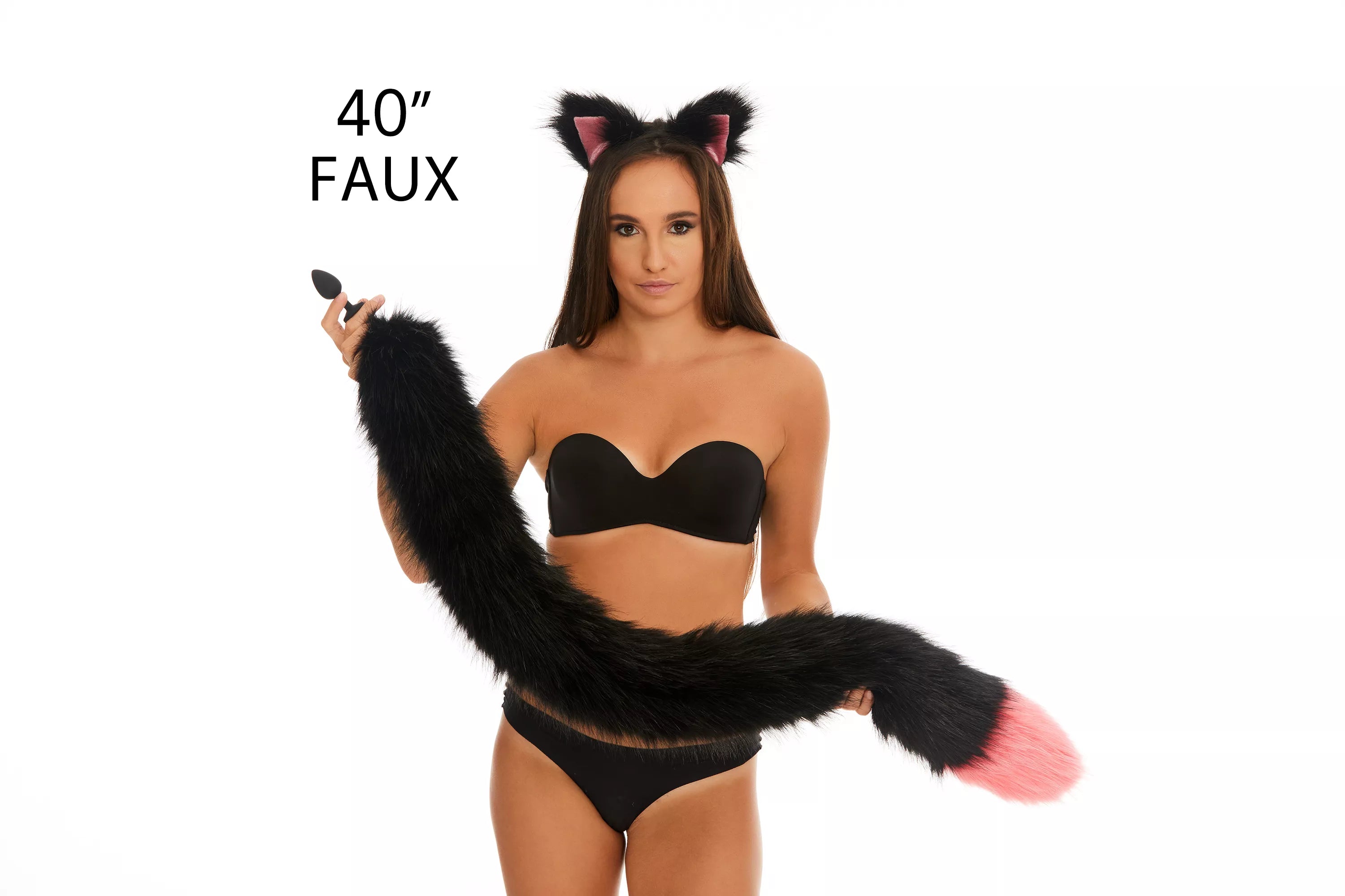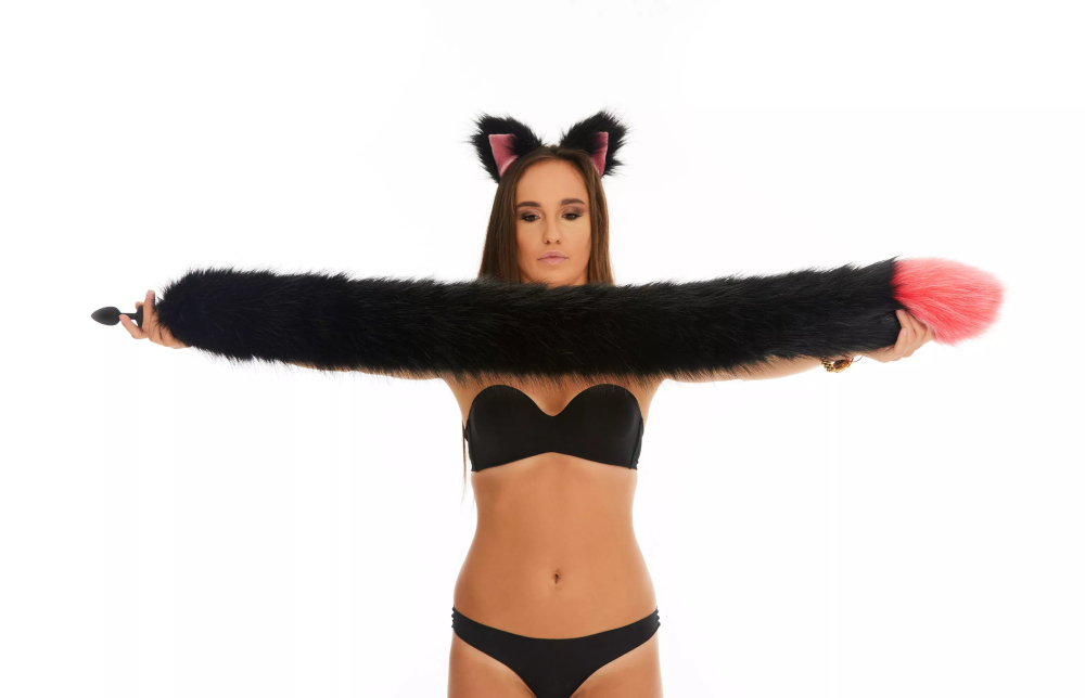Анальний хутряний хвіст без пробки Чорний з яскраво-рожевим кінчиком OKOVA 1000 мм