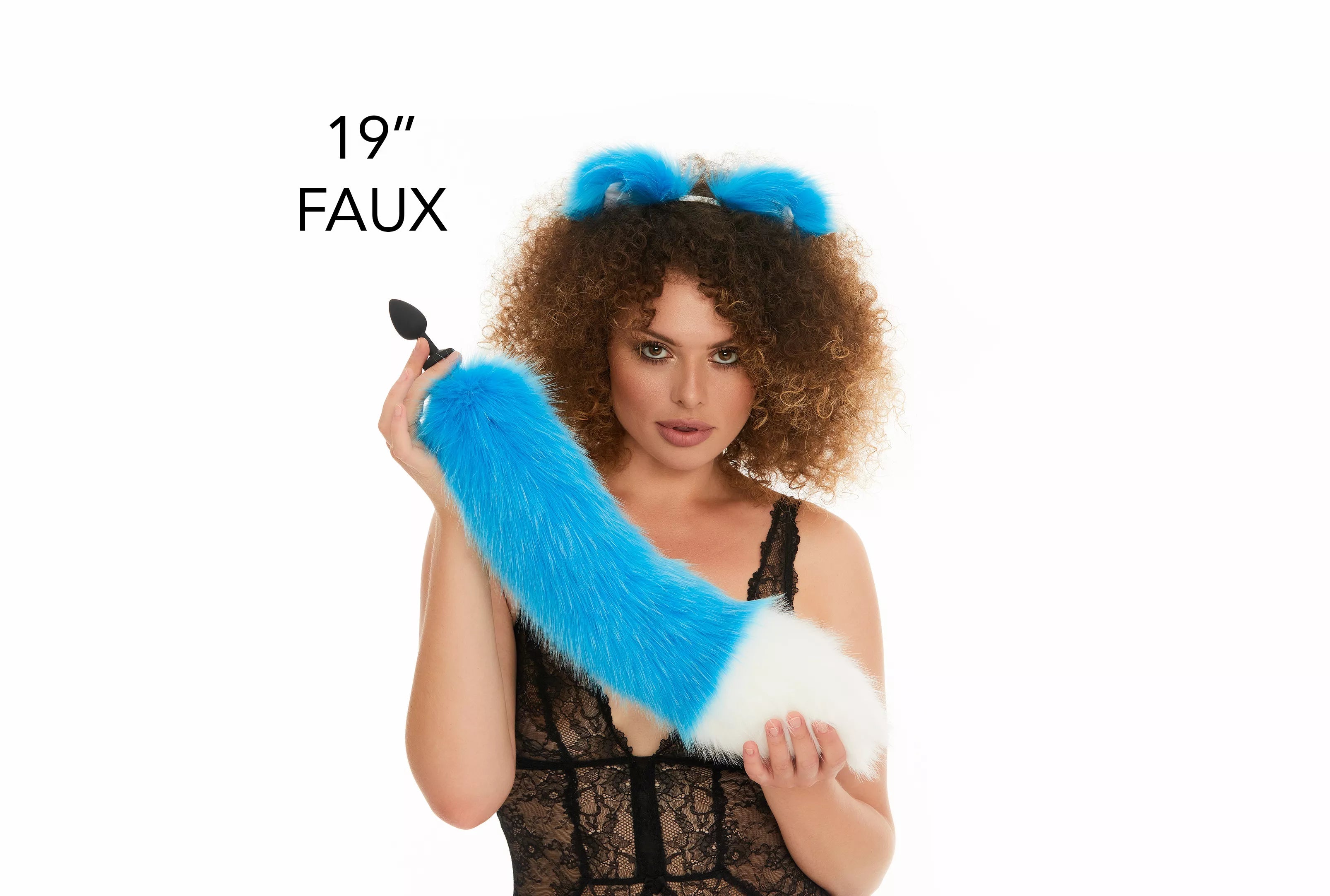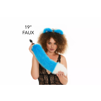Анальний хутряний хвіст без пробки Яскраво-блакитний з білим кінчиком OKOVA 500 мм