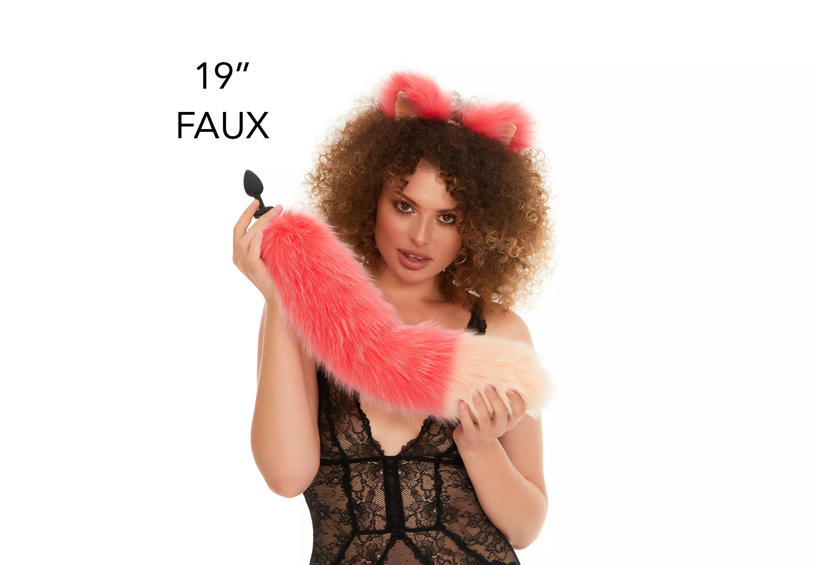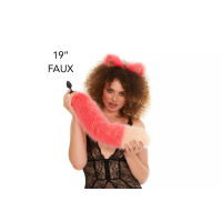 Анальний хутряний хвіст без пробки Яскраво-рожевий з персиковим кінчиком OKOVA 500 мм