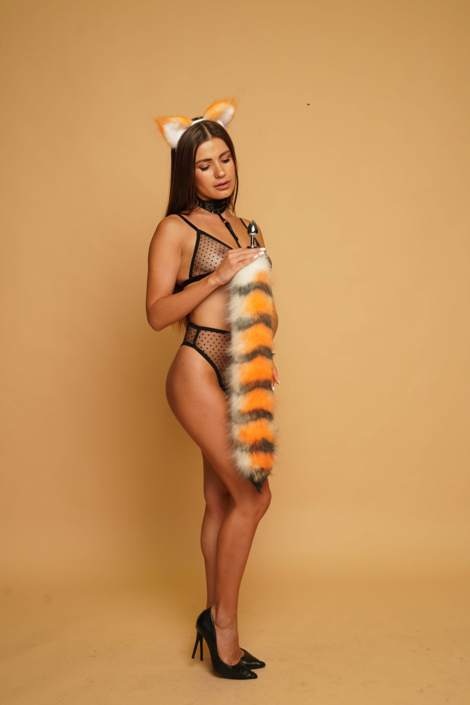 Хвіст виготовлений із якісного штучного хутра, він досить пухнастий, приємний на дотик, має досить натуральний та привабливий вигляд.
