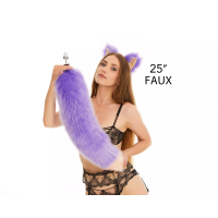 Анальний хутряний пухнастий хвіст без пробки Фіолетовий з персиковим кінчиком OKOVA 600 мм