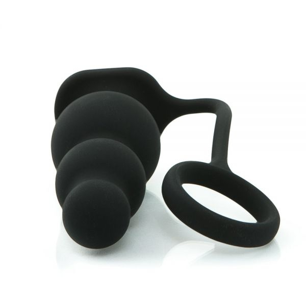 Анальний плаг з вібрацією і ерекційним кільцем чорний