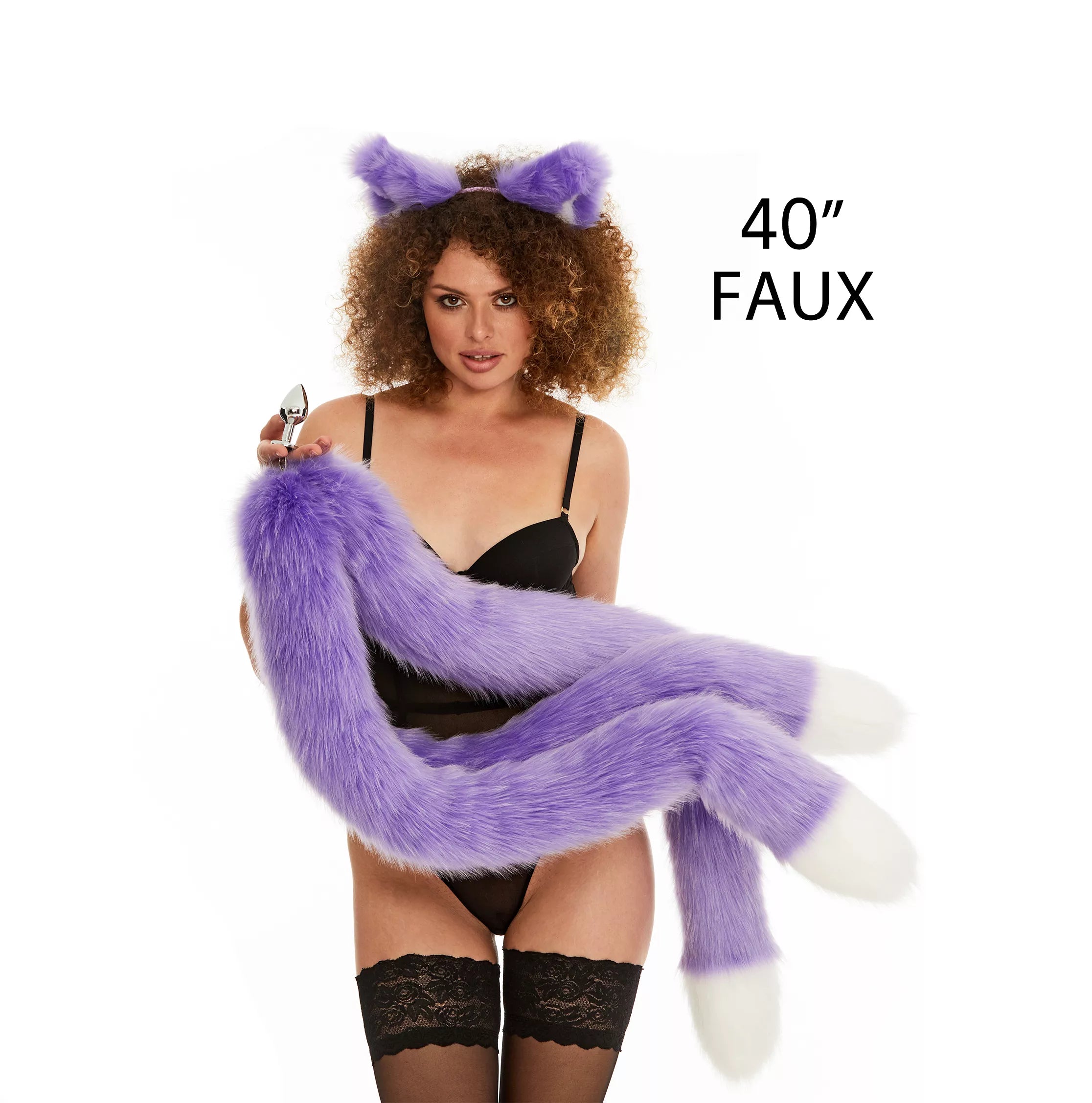 Характеристики Анальний потрійний хутряний хвіст без пробки Фіолетовий з білим кінчиком OKOVA 1000 мм