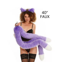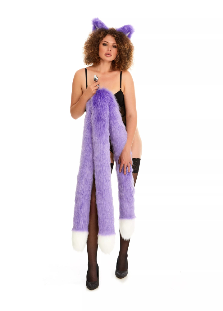 Анальний потрійний хутряний хвіст без пробки Фіолетовий з білим кінчиком OKOVA 1000 мм