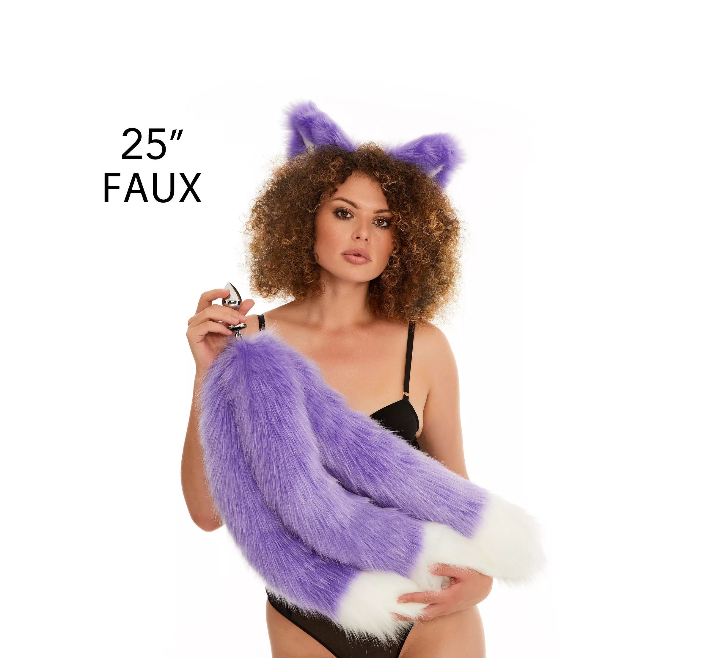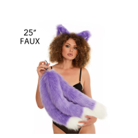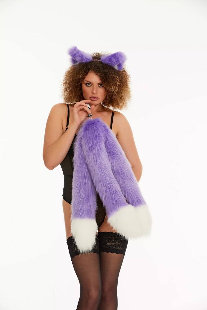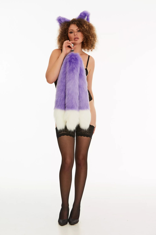Анальний потрійний хутряний хвіст без пробки Фіолетовий з білим кінчиком OKOVA 600 мм