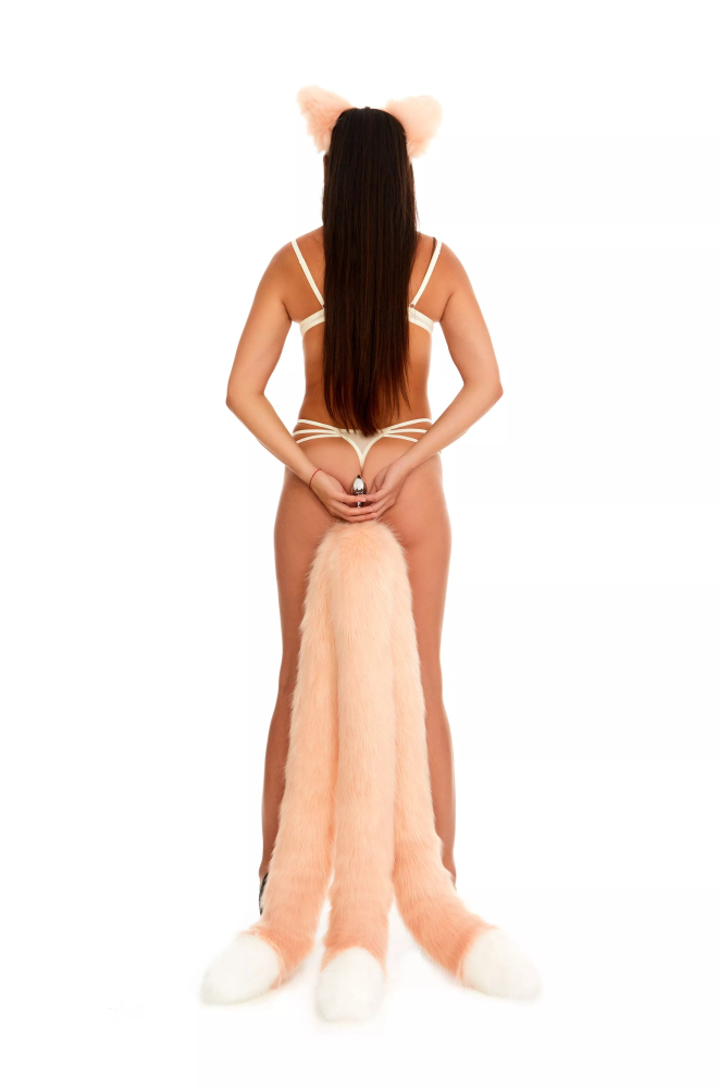 Анальний потрійний хутряний хвіст без пробки Персиковий із білим кінчиком OKOVA 1000 мм