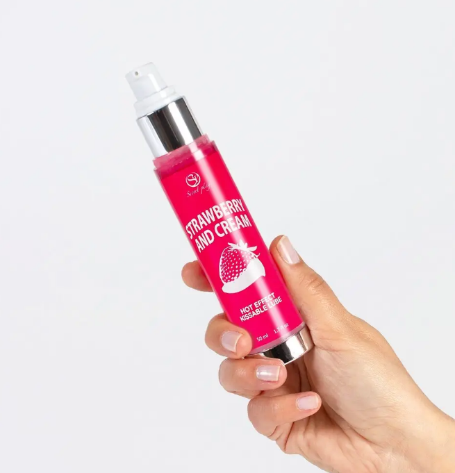 Гель лубрикант і масажне масло 2 в 1 з ефектом, що зігріває, і ароматом полуниці з вершками. Без цукру та парабенів, ідеально підходить для всіх ерогенних зон: сосків, шиї тощо. д Об'єм: 50 мл Аромат: полуниця із вершками. Гліцеринова основа. Можна використовувати як масажне масло і як мастило. Склад: Glycerin, Aqua, Aroma, Sodium Saccharin, CI14720 Спосіб застосування: Нанесіть рясно на бажану область тіла і ніжно помасажуйте. Запобіжні заходи: - Не використовуйте у разі підвищеної чутливості або алергії на будь-який з інгредієнтів. - У разі роздратування припиніть використання. -Не наносити на область навколо очей чи рани. -Зберігайте у недоступному для дітей місці. -Зберігати у прохолодному та сухому місці та захищати від сонячних променів.