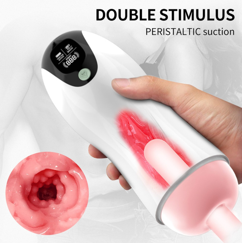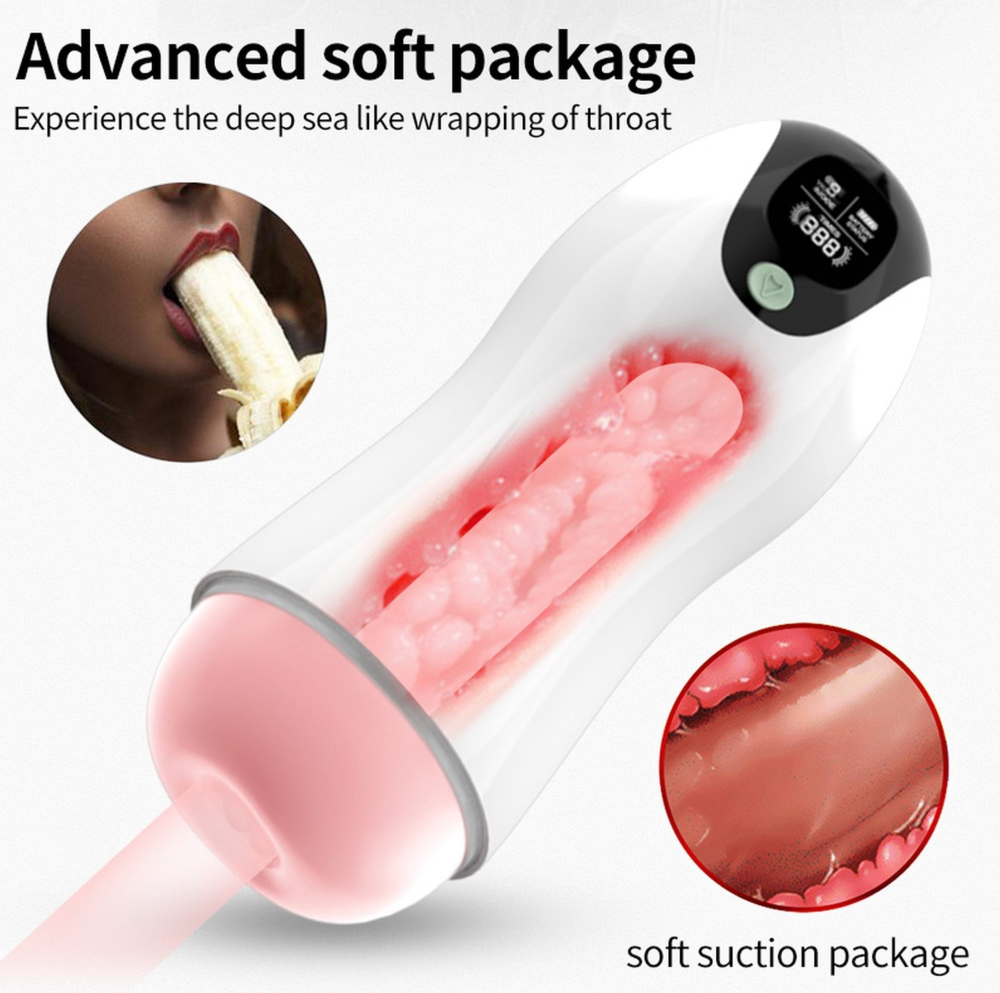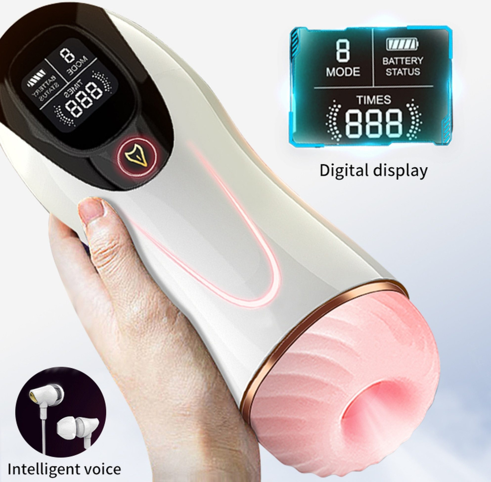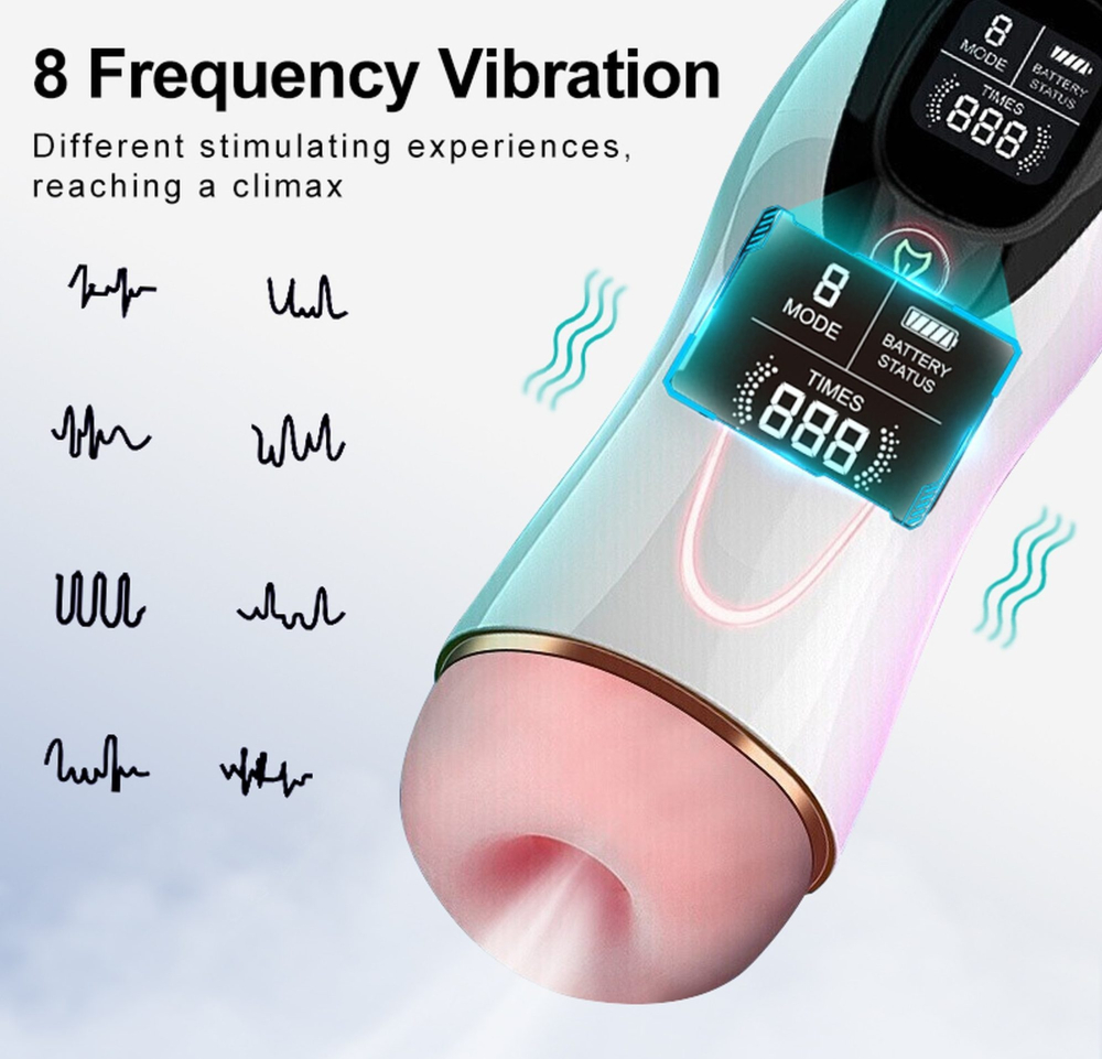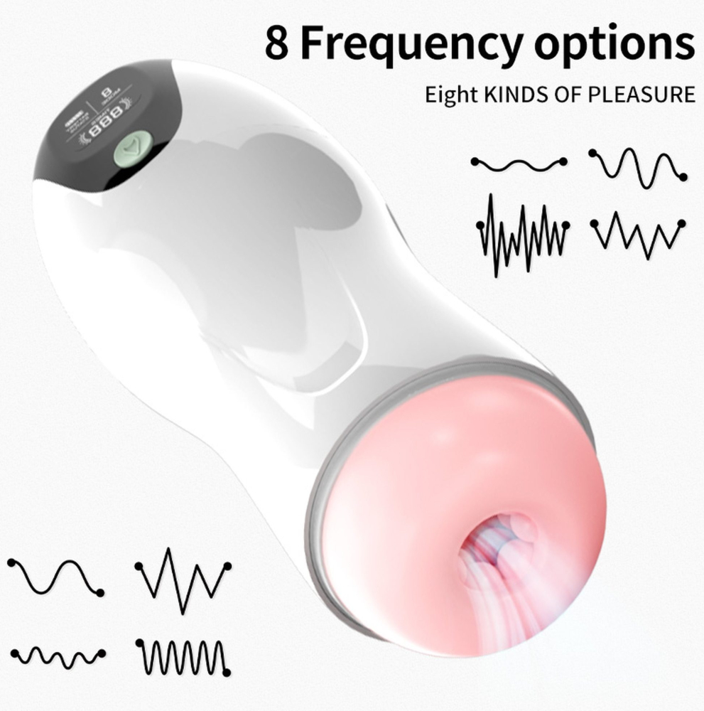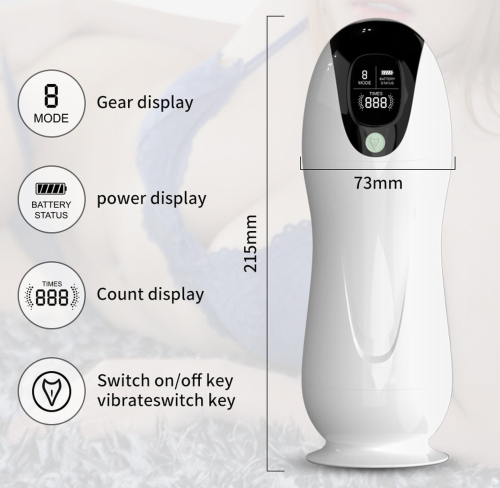 Сучасний мастурбатор, керований однією кнопкою. Потужний вібраційний блок дозволяє проводити регульований масаж по всій довжині полового члена. 8 функцій інтенсивної вібрації, пульсації та наростання. Звукові ефекти та дивовижна інтерактивна функція. У мастурбаторі є датчик руху, завдяки якому він адаптує тип любовних звуків до кількості та силі поштовхів. Будь ласка, використовуйте навушники під час переходу на інтерактивну функцію. Порт для заряджання також є входом для навушників (навушники в комплекті). Коротко натисніть кнопку, щоб увімкнути мастурбатор, ще одне коротке натискання увімкне перший режим вібрації. Кожне коротке натискання змінює функцію масажера, перемикаючись між 8 режимами вібрації. М'який та реалістичний матеріал - кібершкіра, пестить своїм дотиком. Текстурована камера для додаткових відчуттів. Іграшка має лічильник кількості рухів мастурбатора.
