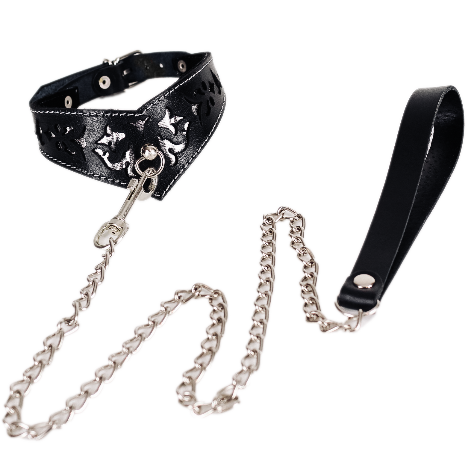 Ажурний нашийник з повідцем БДСМ із натуральної шкіри чорно сріблястого кольору Scappa ширина 45 мм