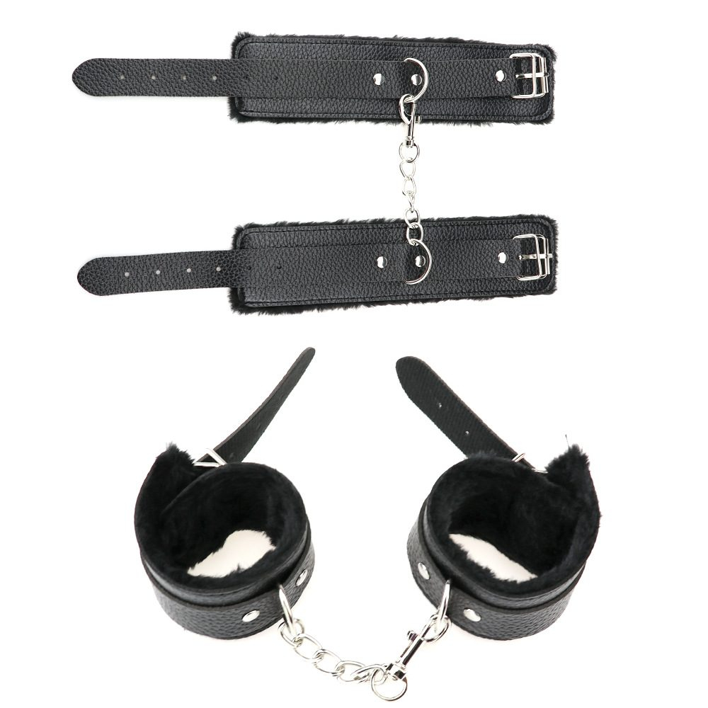 Стильний, брутальний та сексуальний набір БДСМ у чорному кольорі, внесе свою родзинку на звичайний секс і перетворить його на щось нове та незвичайне. Не соромтеся своїх фантазій, сміливо дійте і перетворите прелюдію на еротичну гру. Маючи в наборі наручники, кайдани і конектор, який з'єднує перші два аксесуари - можна вибирати один з предметів поступово або знерухомити партнера ззаду або спереду використовуючи хрест-конектор. Імпровізуйте, слідуйте бажанням партнера і негайно отримайте неймовірні емоції! Набір Love caresses виконаний з якісної фурнітури чорного кольору. Наручники та кайдани на ноги, з внутрішнього боку прошиті м'яким плюшем, що позбавляє від больових та інших дискомфортних відчуттів під час використання. Ремені мають універсальний розмір і можуть використовуватись як чоловіком, так і жінкою. Конектор-хрест у чорному кольорі з екошкіри має міцні гачки, на які можна фіксувати кайдани та наручники. Матеріал: еко шкіра, метал, плюш Колір: чорний