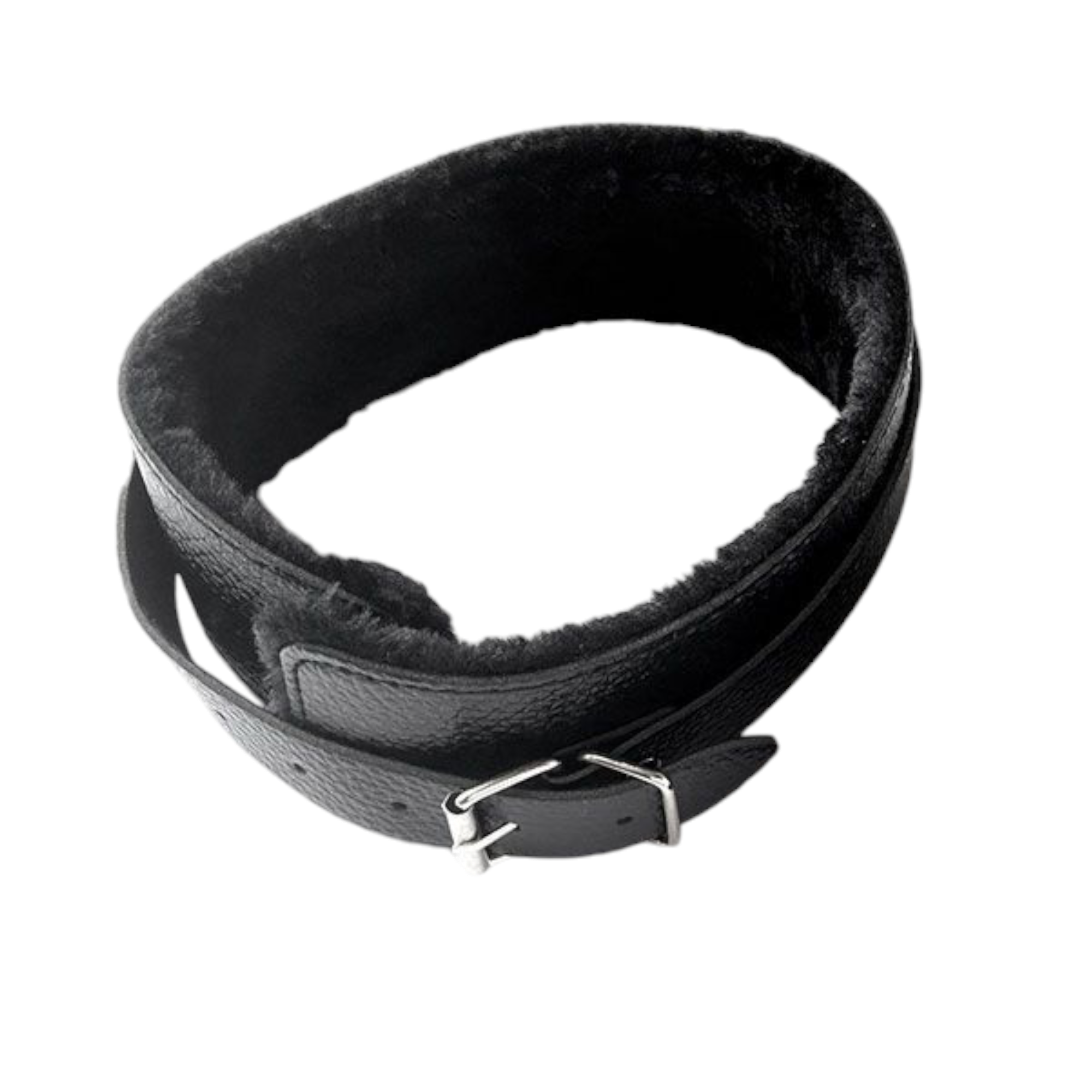 М'який нашийник, який ніжно огортає шию партнера та демонструє його готовність до підпорядкування. Цей аксесуар відмінно підійде для безпечних ігор БДС навіть початківцям. Нашийник виконаний з м'якого шкірозамінника, всередині якого пухнаста підкладка зі штучного хутра спеціально для безболісного використання. Матеріал не натирає шкіру, дуже приємний до тіла. Розмір нашийника універсальний та підійде як чоловікові, так і жінці. Фіксується ремінцями із металевою пряжкою. Матеріал: шкірозамінник, хутро, метал Довжина: 430 мм Ширина: 53мм
