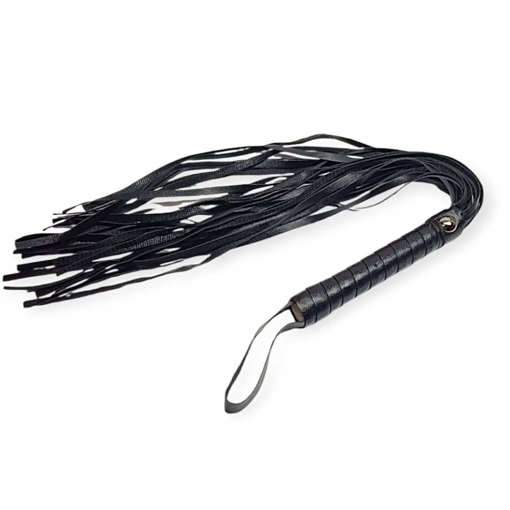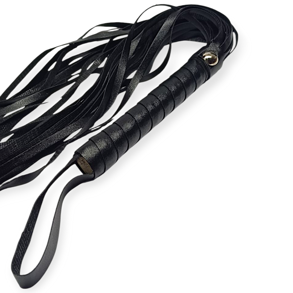 Плеть, яка з покаранням дарує незабутні збуджуючі відчуття. Відмінно підходить як для лоскоту, так і для посилених бавовнів. У підстави рукояті є спеціальна петелька, завдяки якій аксесуар можна повісити на гачок, а при необхідності з легкістю взяти її в користування без витрати часу на пошук аксесуара. Матеріал: шкірозамінник Колір: чорний Довжина загальна: 485 мм Довжина рукояті: 115 мм Довжина хвоста: 300мм Довжина петлі: 70 мм